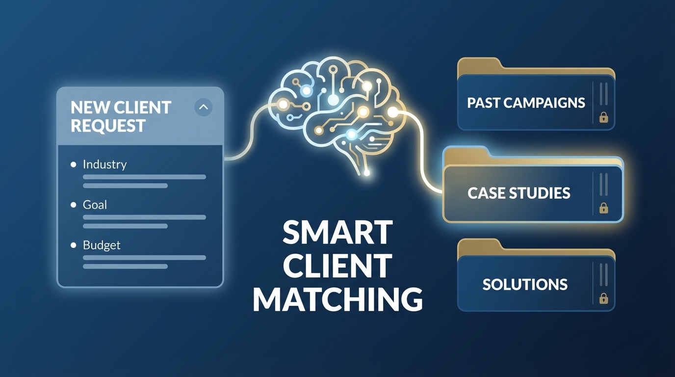 - How It Works: When a new client request arrives, the AI automatically scans its historical archives. It identifies and surfaces relevant past solutions, strategies, and key insights.
