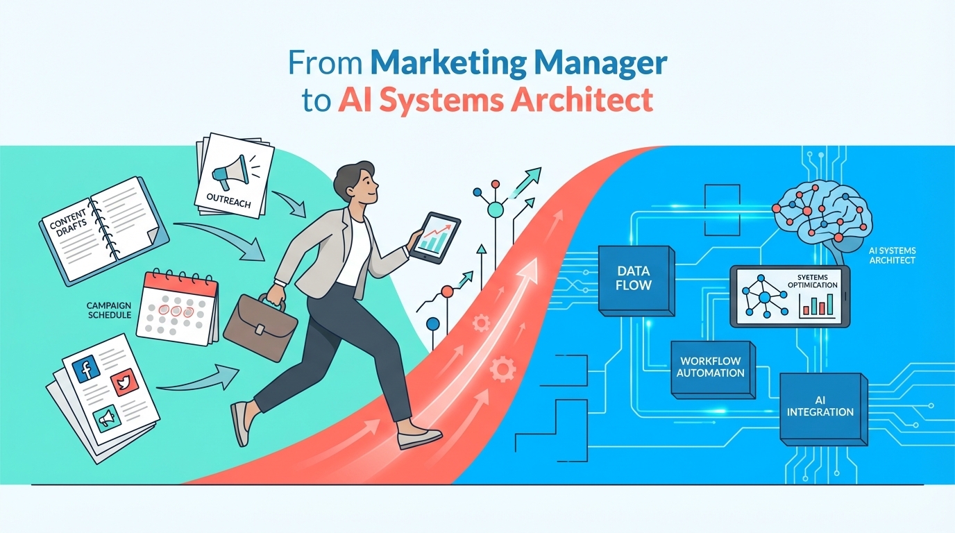 The career path from Marketing Manager to AI Systems Architect requires a fundamental mindset shift from execution to design. Instead of running marketing campaigns, you will build the automated engines that power them.