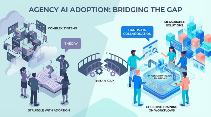 Most marketing teams are stuck in an "AI knowledge gap." They've consumed webinars, read articles, and even taken online courses. They understand the what and why of AI but are paralyzed when it comes to the how. This gap between knowing and doing is where ROI disappears.