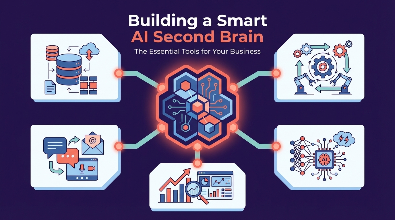Building a smart AI second brain requires a core stack of tools for logic, memory, intelligence, and data input. A properly architected system automates information triage and knowledge retention, functioning as a proactive executive assistant that manages your business’s intellectual capital.