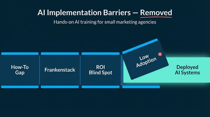 The fastest way to overcome AI bottlenecks in marketing is through guided, hands-on training where the team builds a production-ready workflow collaboratively, creating a repeatable system that everyone understands.